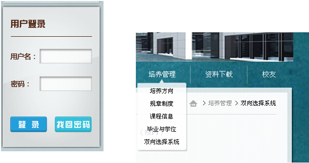 2.登入后,在左上角“培养管理”的下拉菜单中点击进入“双向选择系统”。(校外导师不在选择范畴)
