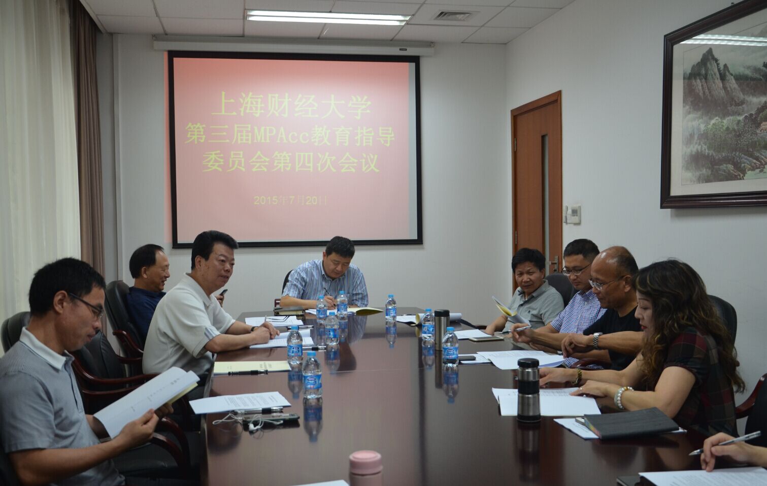 上海财经大学第三届MPAcc教育指导委员会第四次会议,于2015年7月20日上午在会计学院二楼会议室举行。校学术委员会主席兼商学院院长孙铮、副校长陈信元、原校长汤云为、上汽集团副总裁朱根林、校长助理兼研究生院常务副院长郑少华、教务处处长朱红军、会计学院院长李增泉、副院长潘飞以及MPAcc中心主任张纯等出席了会议。