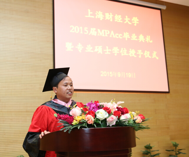 2015年9月19日, 2015届MPAcc “毕业典礼暨专业硕士学位授予仪式” 在上海财经大学会计学院一楼报告厅隆重举行。