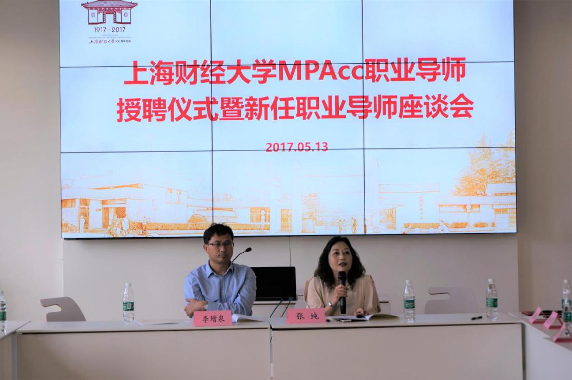 2017年5月13日下午,上海财经大学MPAcc职业导师授聘仪式暨新任职业导师座谈会在会计学院108会议室召开。会议由MPAcc中心主任张纯教授主持,会计学院院长李增泉教授与三十多位新任职业导师们出席了本次会议。