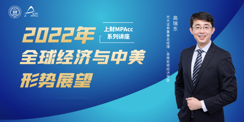 2021年11月27日,上海财经大学MPAcc系列讲座迎来光大证券董事总经理、首席宏观经济学家、研究所副所长高瑞东先生,他为上财学子带来题为“2022年全球经济与中美形势展望”精彩报告。受疫情影响,本次讲座临时改为线上举行,我校200余名师生、校友参与了本次讲座。