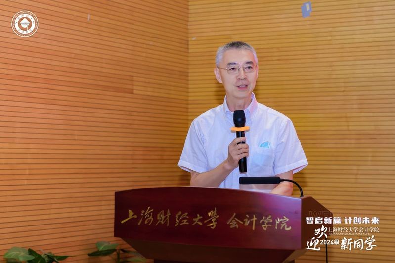 他表示我们正处在一个韧性时代,随着数据资源成为企业的新型生产要素,其性质、价值和归属权等问题给会计理论与实务带来了全新的挑战。此外,数字化转型正在深刻改变财务职能,从传统的记账、算账扩展到数据分析、决策支持及战略规划,财务人员的角色也变得日益多元化。孙教授寄语新生们要立足当下,勇于迎接挑战,洞察未来发展趋势,行稳致远。
