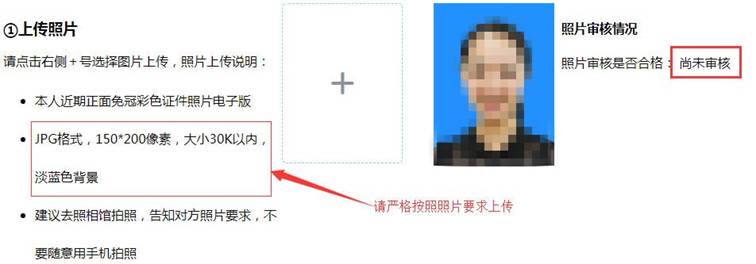 注意:务必确保上传的本人近期正面免冠彩色照片的尺寸为150×200像素,不合规定的照片将会被系统自动压缩或审核不合格。