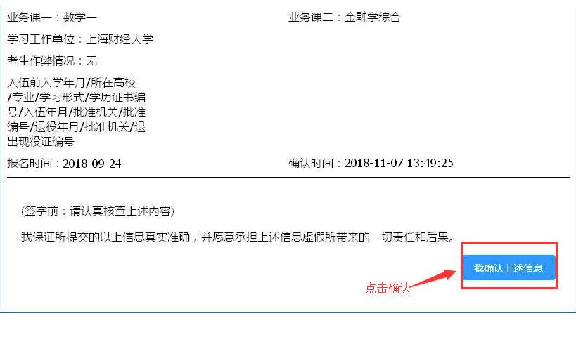 考生应仔细核对包括照片在内的报考信息,核对完成后点击确认,完成网上确认所有流程。