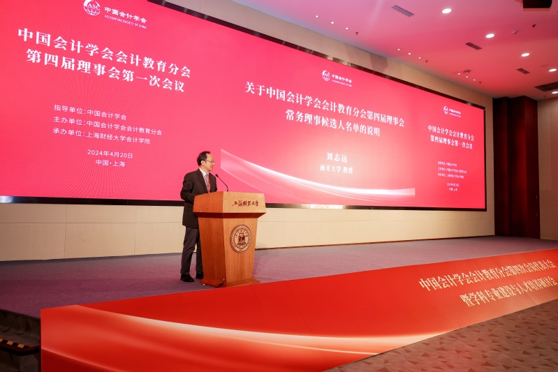 中国会计学会会计教育分会新当选会长靳庆鲁同志代表中国会计学会会计教育分会第四届理事会领导班子表态发言。他首先对各位理事的信任和支持表示感谢,并为大家简要介绍了中国会计学会会计教育分会未来的工作计划和设想。他表示会计教育分会将积极配合好中国会计学会工作,发挥好自身优势,开拓思路,创新方式,助力各个高校更好地开展学术研究、学科建设和人才培养工作!