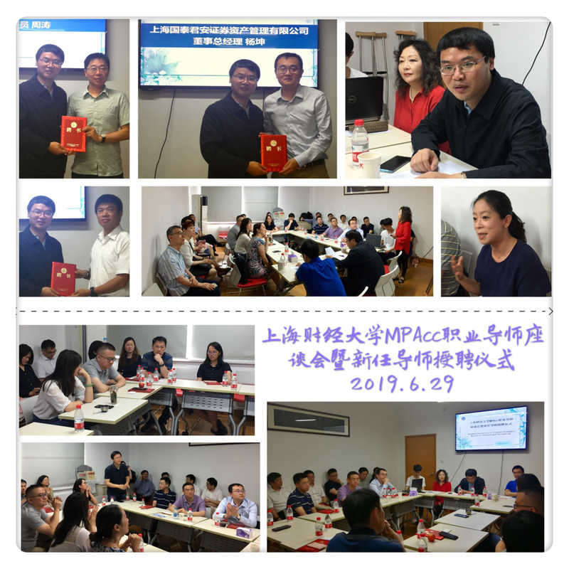2019年6月29日上午,上海财经大学MPAcc职业导师座谈会暨新任职业导师授聘仪式在MPAcc中心609会议室召开。会议由MPAcc中心主任张纯教授主持,会计学院院长靳庆鲁教授、副院长曾庆生教授,职业导师高梅、何丽华、胡宏春、李玮君、隋静媛、屠雪峰、吴轶伦、薛峰、叶庆、尹超文、张宏昌等以及新聘任的十二位职业导师出席。